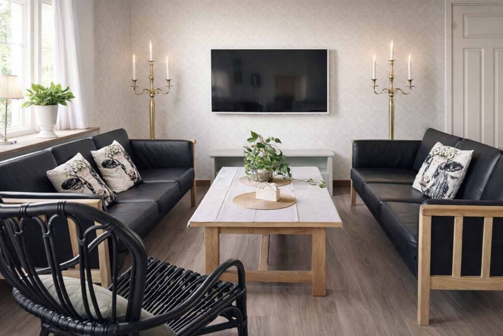 Hos oss kan ni bo på våran Country Lodge med självhushåll, med altan och trädgård. Ni har djur & natur inpå knuten, Bräkentorp badplats 2,5 km bort, möjlighet till fiske 500m från vår Country Lodge, spa, shopping och aktivitet inom nära räckhåll i Ljungby city.